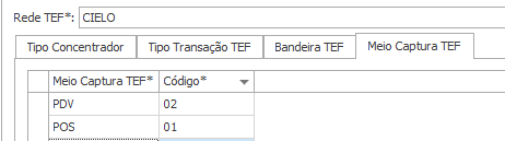 As redes, bandeiras e tipos de transação TEF configuradas devem ser as mesmas utilizadas nos cadastro de forma de recebimento;