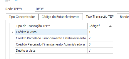 - 1 Todos os cadastros nas abas da Rede TEF aceitam no campo código o separador ponto e vírgula